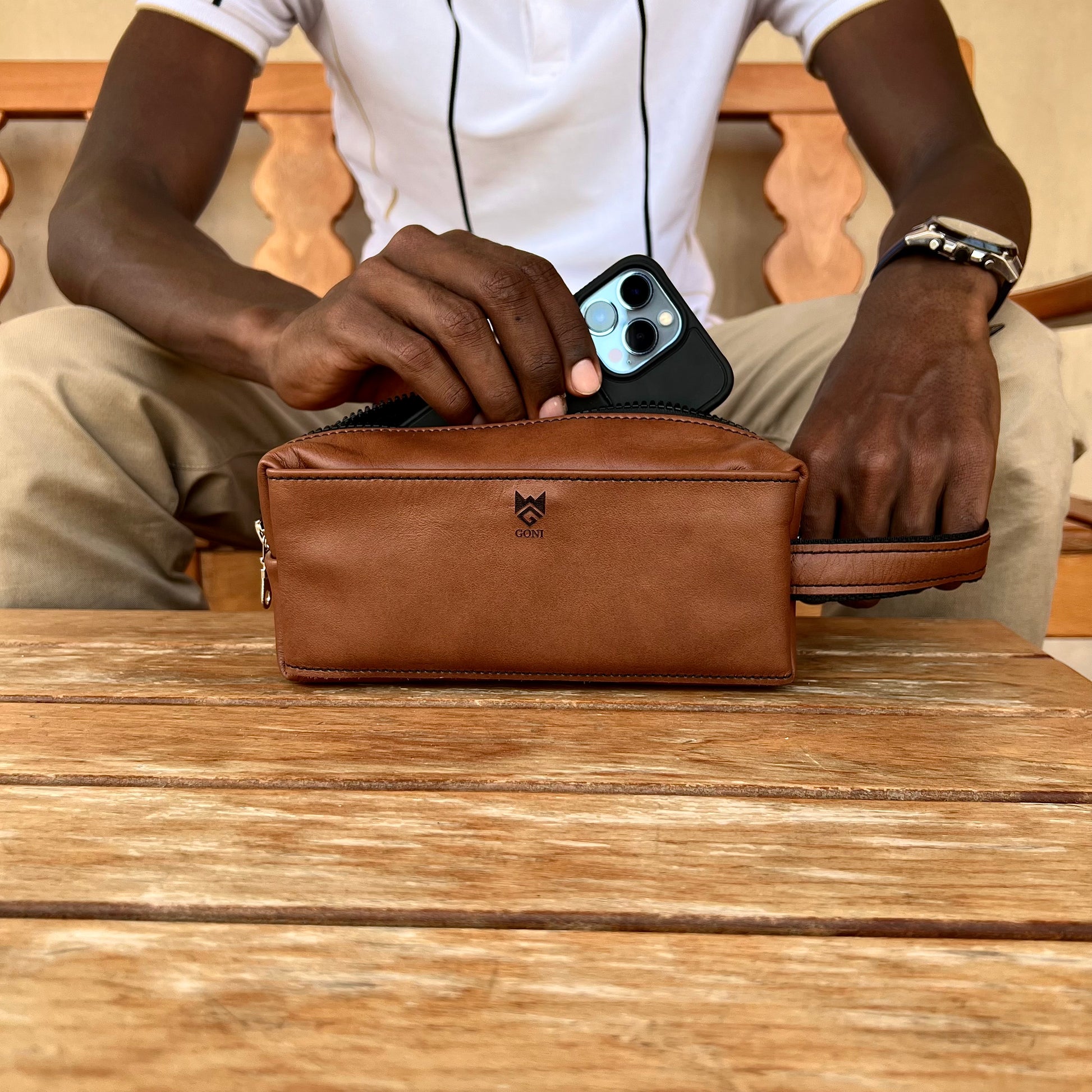 Stay organized in style with this premium leather pouch. Made from authentic Italian leather, it's perfect for carrying essentials like your phone charger, power bank, cables, or toiletries.