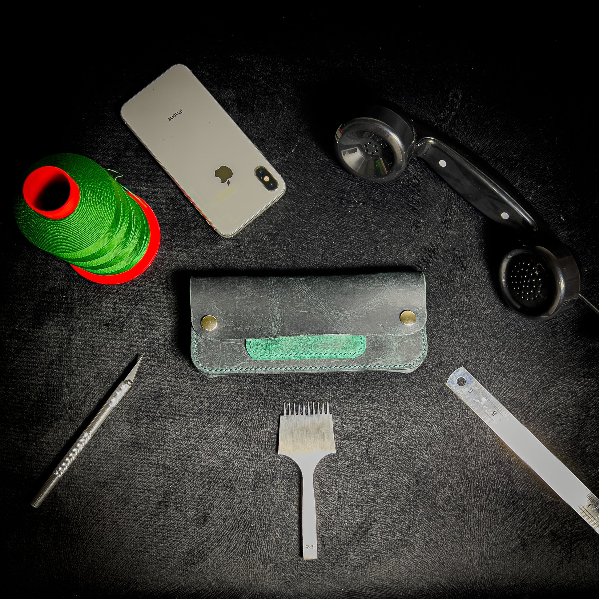 The striking mix of deep black and emerald green creates a refined yet distinctive look, while the natural texture of the leather develops a rich patina over time — making every wallet truly unique.